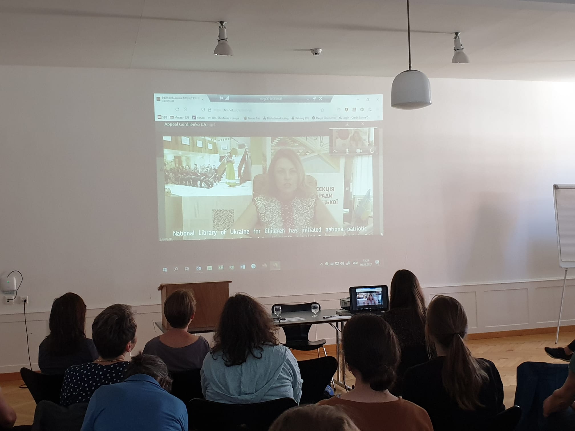 До зустрічі швейцарських бібліотекарів, яка відбувалася наживо, на запрошення директора «Бібліомедія. Золотурн» Клаудії Ковалік долучилася (віртуально) генеральний директор Національної бібліотеки України для дітей Алла Гордієнко. У своєму зверненні пані Алла розповіла про виклики, які постали перед спеціалізованими бібліотеками України для дітей; про масштаби руйнування публічних бібліотек та, зокрема, спеціалізованих бібліотек для дітей внаслідок російської військової агресії. Генеральний директор зазначила, що наразі бібліотеки для дітей стали волонтерськими осередками, місцем безпеки та свободи, де кожен, хто потребує, отримає допомогу і психологічну підтримку. Окрім роботи з дітьми-переселенцями, працівники бібліотек збирають гуманітарну допомогу для родин, які втратили домівки, а юні користувачі бібліотек плетуть маскувальні сітки та створюють суверніри-обереги для захисників. Також Алла Гордієнко зауважила, що попри воєнний стан Національна бібліотека України для дітей та спеціалізовані бібліотеки України для дітей втілюють всеукраїнські проєкти; розповіла детальніше про останні ініціативи, серед яких ековиховний проєкт – Всеукраїнський конкурс плакатів «Майбутнє планети у наших руках!» у рамках відзначення Року збереження природи та живого миру в Україні і Національно-патріотичний рух підтримки захисників «Що я скажу солдату перемоги».