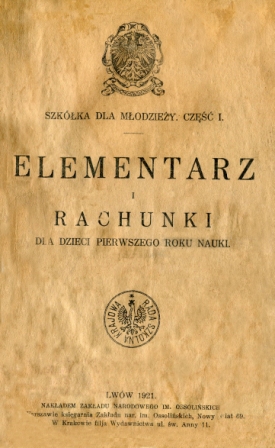 Elementarz i rachunki : Dla dzieci pierwzego roku nauki. — Lwow : Nakladem zakladu narodowego im.Ossolinskich, 1921. — 85 с. : іл.