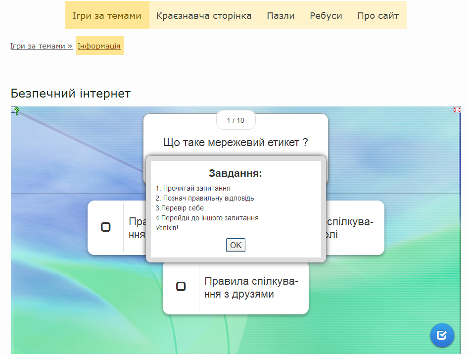 «Інтернет: гра за правилами»: цикл медіауроків для дітей 9+ |