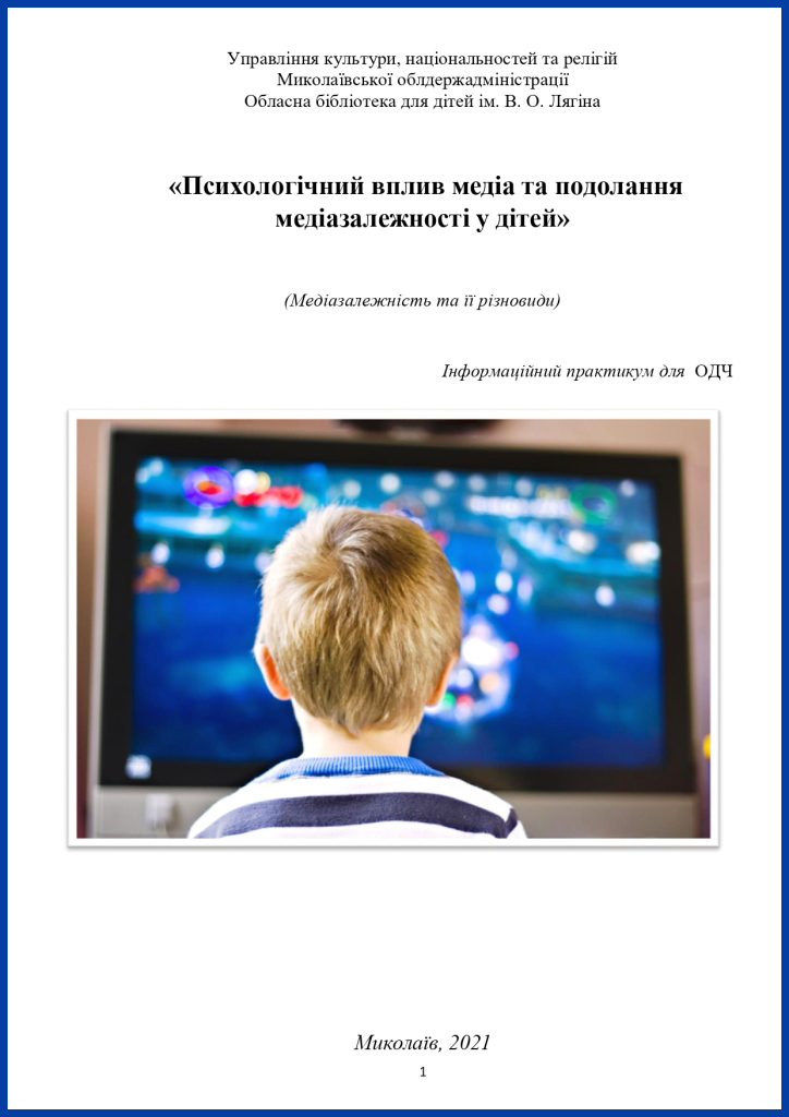 «Психологічний вплив медіа та подолання медіазалежності у дітей»: інформаційний практикум для організаторів дитячого читання |