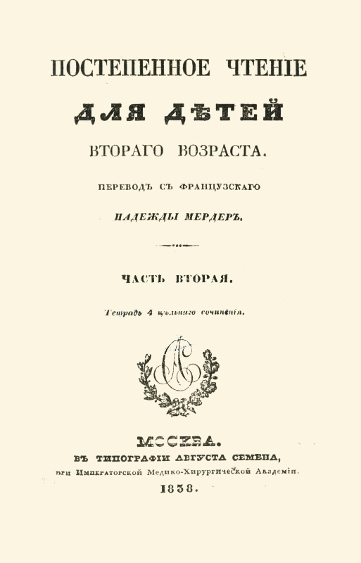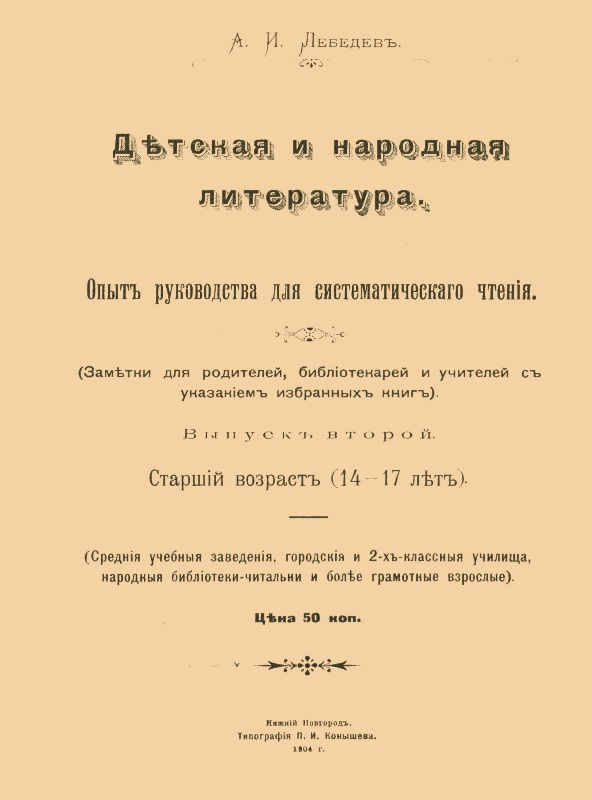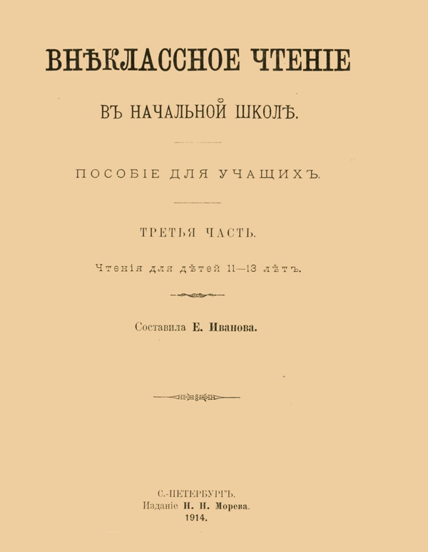 Книги та періодичні видання, що згадуються в дослідженнях про бібліотеку Дори Доброї Книги ![]() Брандес Г. О чтении / Г. Брандес ; пер. с дат. О. Румер. – М. : Творчество, 1913 (М. : Графическое заведение "Друкарь"). – 27 с. ![]() Внеклассное чтение в начальной школе : пособие для учащих. Ч. 1 : Чтение для детей 7–9 лет / сост. Е. Иванова. – СПб. : [Издание Н. Н. Морева], 1913 (СПб. : Тип. "Бережливость"). – 140 с. : ил. – Библиогр.: С. 119-138. – На обкл.: 1914. ![]() Внеклассное чтение в начальной школе : пособие для учащих. Ч. 2 : Чтение для детей 9–11 лет / сост. Е. Иванова. – СПб. : Издание Н. Н. Морева, 1914 (Спб. : Тип. "Бережливость"). – 256 с. : ил. – Библиогр.: С. 246-256. ![]() Внеклассное чтение в начальной школе : пособие для учащих. Ч. 3 : Чтение для детей 11–13 лет / сост. Е. Иванова. – СПб. : Издание Н. Н. Морева, 1914 (Спб. : Тип. "Бережливость"). – 320 с. : ил. – Библиогр.: С. 287-318. ![]() Вольгаст Г. Проблемы детского чтения / Г. Вольгаст ; пер. с нем. К. Н. Д. [и др.] ; с предисл. Л. Г. Оршанского. – СПб. : Изд. газеты "Школа и жизнь", 1912. – 128 с. ![]() Детская литература : с 107 ил. в тексте / сост. Н. В. Чехов ; с прилож. "Библиография по вопросам детской литературы и детского чтения", сост. Е.А. Корольковым. – М. : Книгоиздательство "Польза" В. Антик и К, 1909 (М. : Тип. Русского Товарищества). – 256 с. : портр. – (Педагогическая академия в очерках и монографиях. Воспитание в семье и школе / под общ. ред. А. П. Нечаева). – Библиогр.: С. 235-256. ![]() Елачич Е. А. Сборник статей по вопросам детского чтения / Е. Елачич. – СПб. : Издание Е. А. Елачича, 1914 (Спб. : Товарищество Художественной Печати). – 221 с. – На тит.: Евгений Елачич. ![]() Лебедев А. Детская и народная литература : опыт рук. для сист. чтения : (заметки для родителей, библиотекарей и учителей с указанием избр. кн.). Вып. 2–й : Старший возраст (14–17 лет) / А. Лебедев. – Н. Новгород : [б. в.], 1904 (Н. Новгород : Тип.. И. Конышева). – 122 с. ![]() Постепенное чтение для детей второго возраста. Ч. 1, тетрадь 3 цельн. соч. / пер. с фр. Н. Мердер. – М. : [б. в.], 1838 (М. : Тип. Августа Семена при Императорской Медико–Хирургической Академии). – 201 с. ![]() Постепенное чтение для детей второго возраста. Ч. 2, тетрадь 4 цельн. соч. / пер. с фр. Н. Мердер. – М. : [б. в.], 1838 (М. : Тип. Августа Семена при Императорской Медико–Хирургической Академии). – 166 с. |