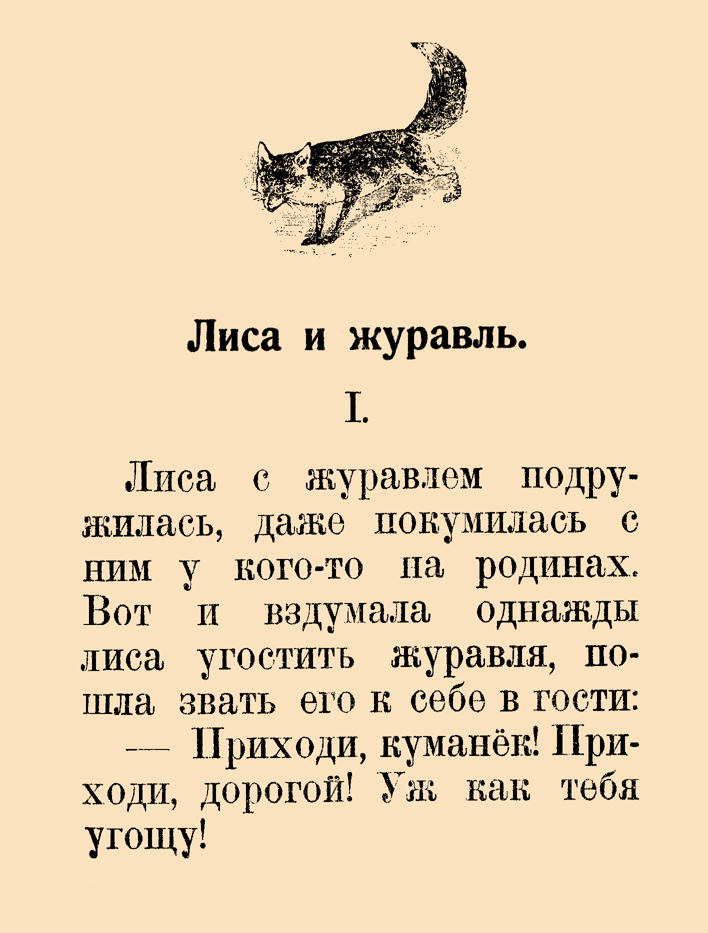 Лиса и журавель. – М., 1919 ( : Тип. Товарищества И. Д. Сытина). –- 31 с. : ил. – Кн. у новій палітурці. – Штамп: Дитяча бібліотека Д. Ю. Доброї.