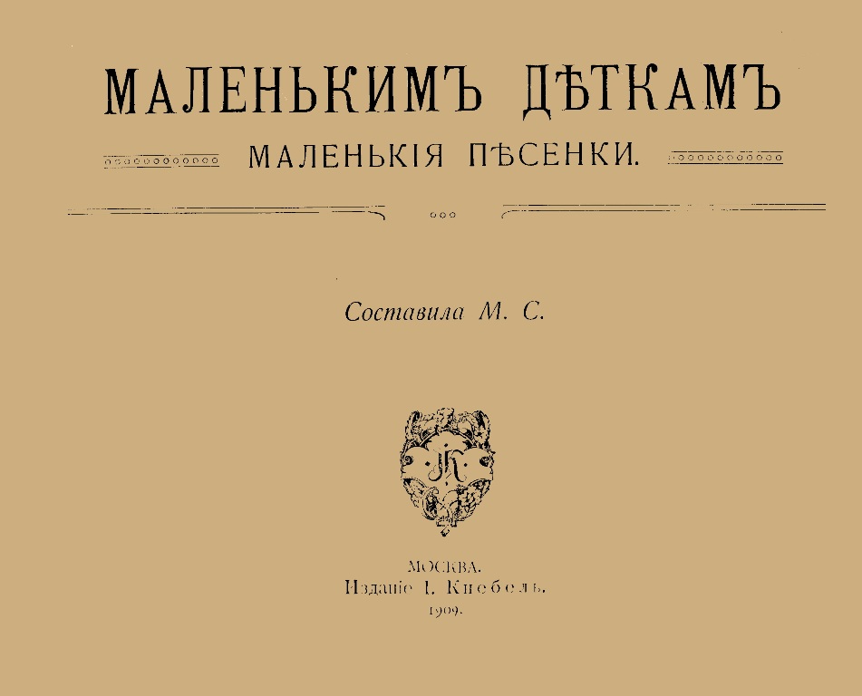 Маленьким деткам маленькие песенки / сост. М. С. - М. : Издание И. Кнебель, 1909 (М. : Т-во скоропечатни А. А. Левенсон). - 84 с. : ил. - Штамп: Дитяча бібліотека Д. Ю. Доброї.