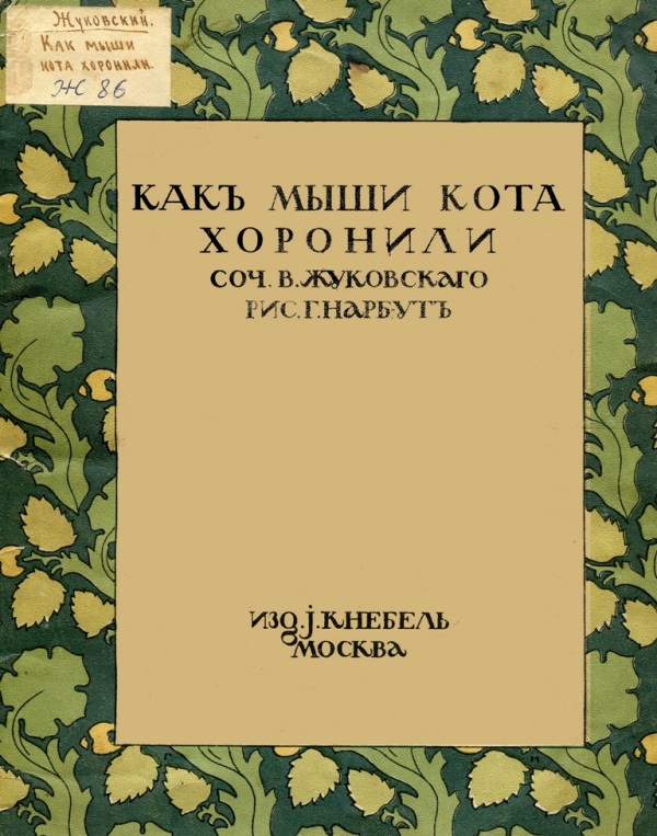 Жуковский В. А. Как мыши кота хоронили / В. Жуковский ; рис. Г. Нарбут. - М. : Издание И. Кнебель, [1910?]. - 12 с. : ил. - Б. т. - Штамп: Дитяча бібліотека Д. Ю. Доброї.