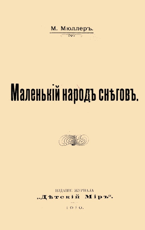 Мюллер М. Маленький народ снегов / М. Мюллер. - М. : Издание журнала "Детский мир", 1910 (М. : Типо-литография Товарищества Владимир Чичерин). - 116 с. : ил. - Б. т. - Штамп: Дитяча бібліотека Д. Ю. Доброї.