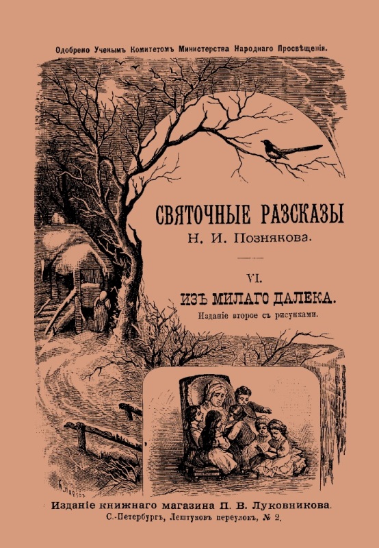 Позняков Н. И. Святочные рассказы. 6 : Из милого далека : с рис. / Н. Позняков. - Изд. 2-е . - СПб. : Издание книжного магазина П. В. Луковникова, 1897 (СПб. : Тип. Товарищества "Общественная Польза"). - 66 с. : ил. - На тит.: Н. И. Позняков. - Б. т. - Штамп: Дитяча бібліотека Д. Ю. Доброї.