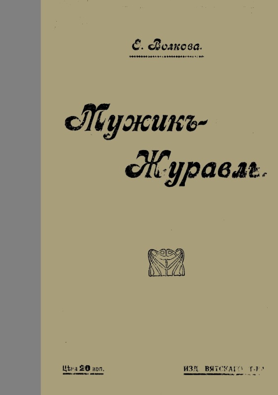 Волкова Е. Ф. Мужик-журавль : ист. рассказ / Е. Волкова. - СПб. ; М. : Издание Вятского Товарищества "Народная Библиотека", 1912 (СПб. : Тип. М. Стасюлевича). - 65 с. - На тит.: Е. Волкова. - Б. т. - Штамп: Дитяча бібліотека Д. Ю. Доброї.