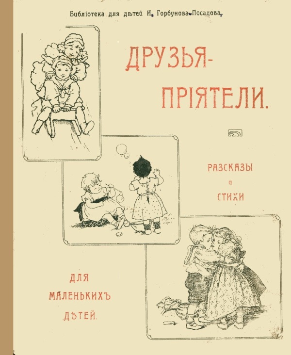 Друзья-приятели : рассказы и стихи для мал. детей / [сост. Е. Горбунова и В. Лукьянская]. - М. : [Издание И. Горбунова-Посадова], [1907] (М. : [Типо-литография Товарищества И. Н. Кушнерев и К]). - 15 с. : ил. - (Библиотека для детей И. Горбунова-Посадова). - Б. т. - Штамп: Дитяча бібліотека Д. Ю. Доброї.