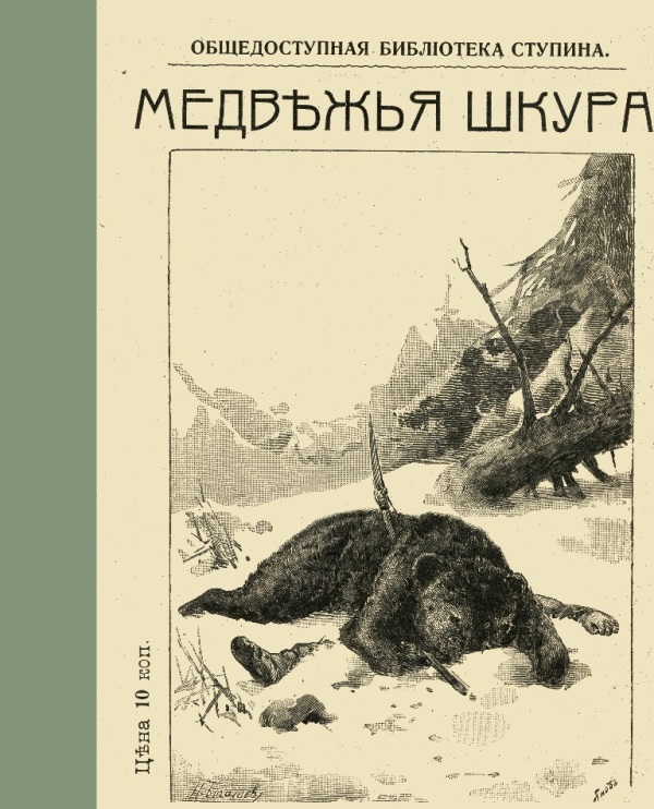 Поспелов С. А. Медвежья шкура : рассказ из жизни на Севере : с рис. / С. Поспелов ; [рис. Н. Богатова]. - 2-е изд. - М. : Издание А. Д. Ступина, 1912 (М. : Тип. Вильде). - 48 с. : ил. - (Общедоступная библиотека Ступина). - На тит.: С. Поспелов. - Б. т. - Штамп: Дитяча бібліотека Д. Ю. Доброї.