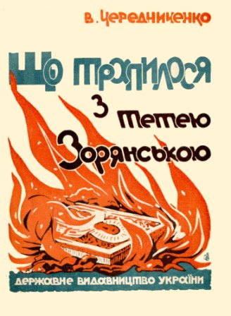 Чередниченко В. Що трапилося з Тетею Зорянською /В. Чередниченко. – [Харків] : Державне видавництво України, 1926 (Харків : 2-а Друкарня-Літ. Держвидаву України). – 36 с. : іл. – На тит. : Варвара Чередниченко.