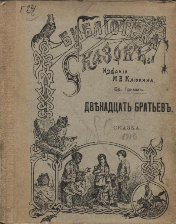 Гримм В. Двенадцать братьев : сказка : с рис. / В. Гримм, Я. Гримм.— Изд. 3-е, печ. с 1-го изд. — М. : Издание М. В. Клюкина, 1916 (М. : Типография Вильде, преемн. К. К. Гаусман). — 16 с. : ил. — (Библиотека сказок).