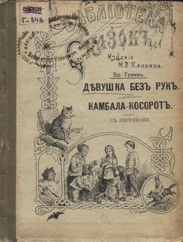 Гримм В. Девушка без рук ; Камбала-косорот : сказки : с рис. / В. Гримм, Я. Гримм. — Изд. 2-е. — М. : Изд. кн. склада М. В. Клюкина, 1914 (М. : Типография В. И. Воронова). — 16 с. : ил. — (Библиотека сказок).