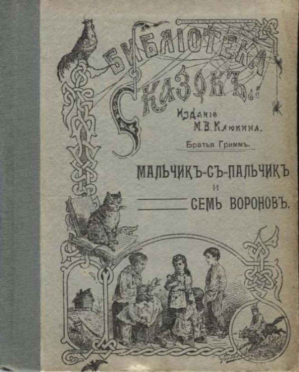 Гримм В. Мальчик-с-пальчик и Семь воронов : сказки : с рис. / В. Гримм, Я. Гримм. — Изд. 3-е, печ. со 2-го изд. — М. : Изд. кн. склада М. В. Клюкина, 1915 (М. : Типография В. И. Воронова). — 16 с. : ил. — (Библиотека сказок).