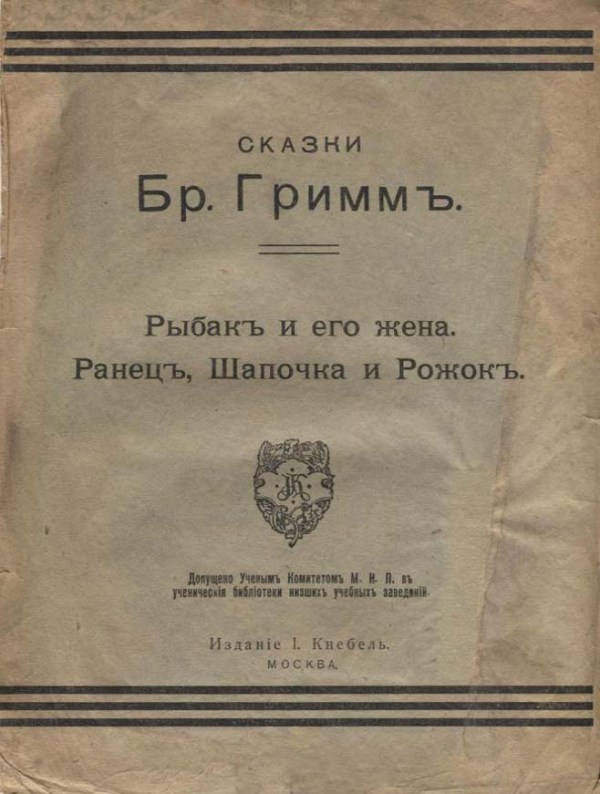 Гримм В. Сказки Бр. Гримм / В. Гримм, Я. Гримм. — М. : Изд. И. Кнебель, [189-?]. — 32 с. : ил.